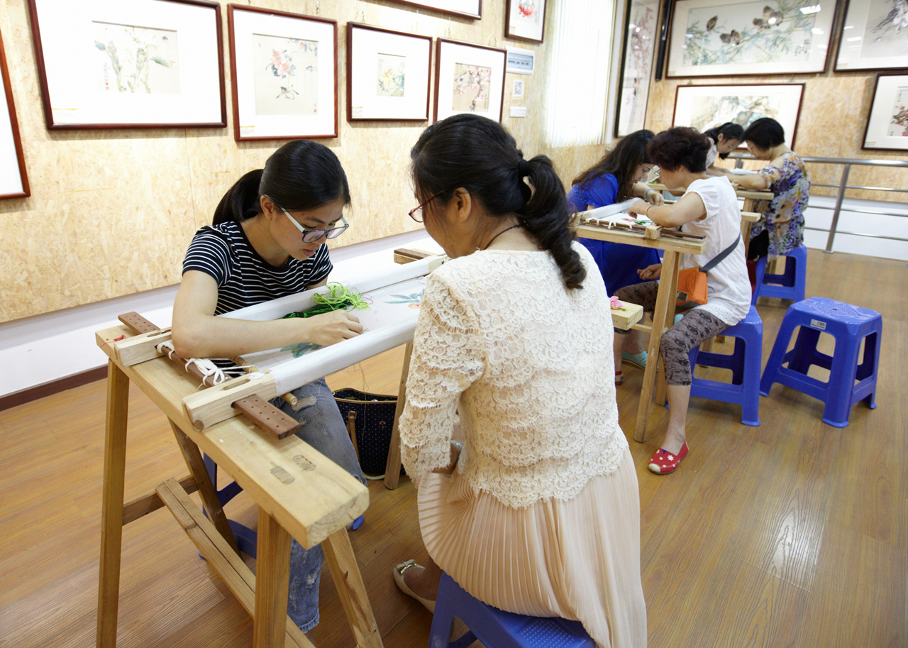 ▲ 近距离观看大师刺绣、与大师零距离交流